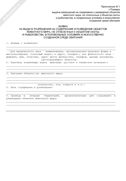 Заявка на выдачу разрешения на содержание и разведение объектов животного мира, не отнесенных к объектам охоты и рыболовства, в полувольных условиях и искусственно созданной среде обитания на территории Московской области (рекомендуемый образец заполнения)