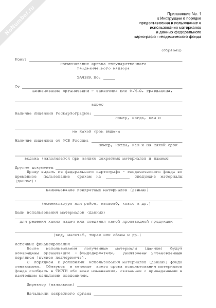 Заявка на выдачу во временное пользование материалов и данных федерального картографо-геодезического фонда (рекомендуемый образец заполнения)