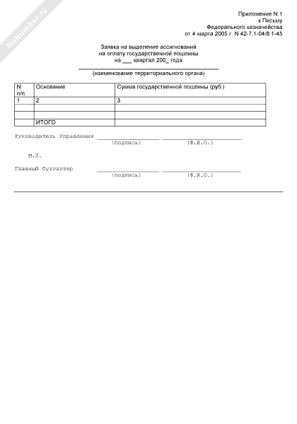 Заявка на выделение ассигнований на оплату государственной пошлины (рекомендуемый образец заполнения)