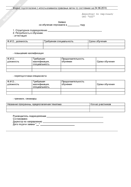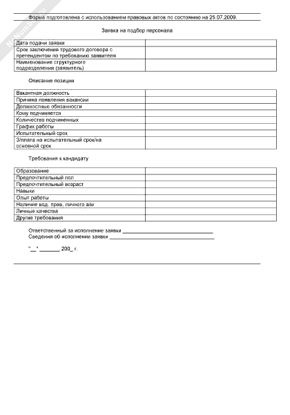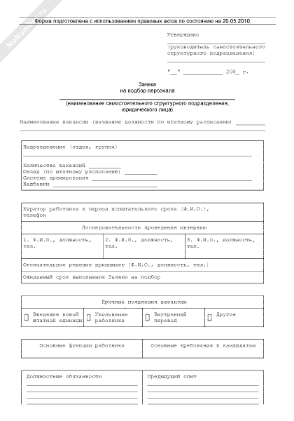 Заявка руководителя структурного подразделения на подбор персонала (рекомендуемый образец заполнения)