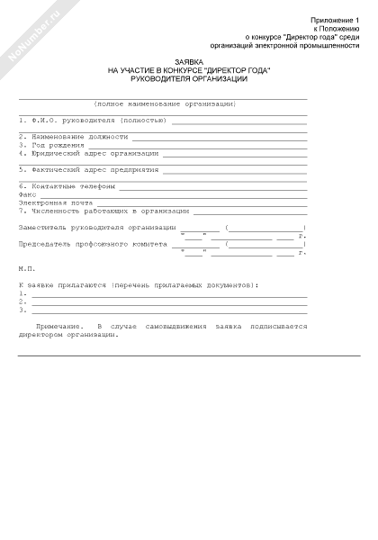 Заявка на участие в конкурсе «Директор года» руководителя организации