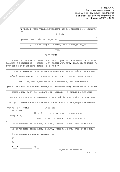 - 2064Заявление о принятии на учет граждан, нуждающихся в жилых помещениях жилищного фонда Московской области, предоставляемых по договорам социального найма