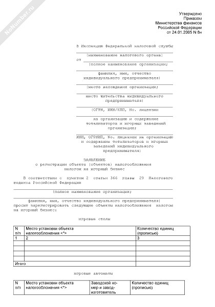 - 2228Заявление о регистрации объекта (объектов) налогообложения налогом на игорный бизнес