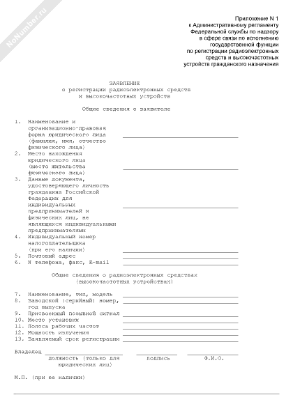 - 2234Заявление о регистрации радиоэлектронных средств и высокочастотных устройств гражданского назначения