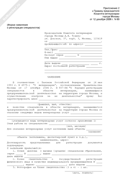 - 2236Заявление о регистрации специалистов в области ветеринарии, занимающихся предпринимательской деятельностью на территории города Москвы