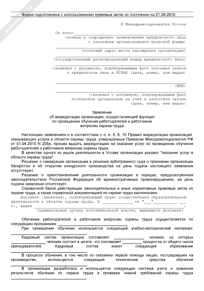 - 2362Заявление об аккредитации организации, осуществляющей функции по проведению обучения работодателей и работников вопросам охраны труда