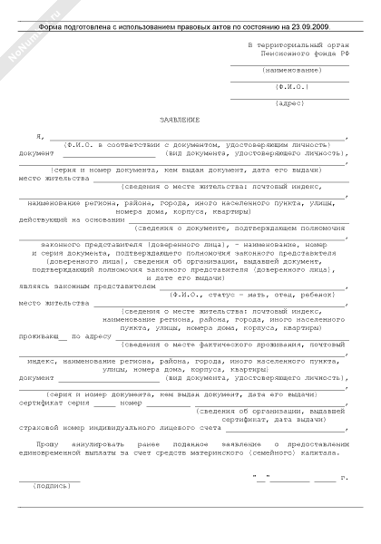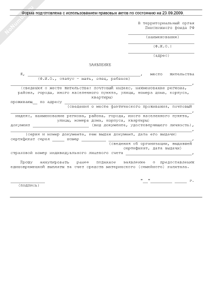- 2369Заявление об аннулировании ранее поданного заявления о предоставлении единовременной выплаты за счет средств материнского (семейного) капитала