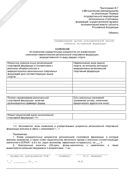 - 2378Заявление об изменении учредительных документов (за исключением изменения наименования) региональной спортивной федерации, аккредитованной по виду (видам) спорта