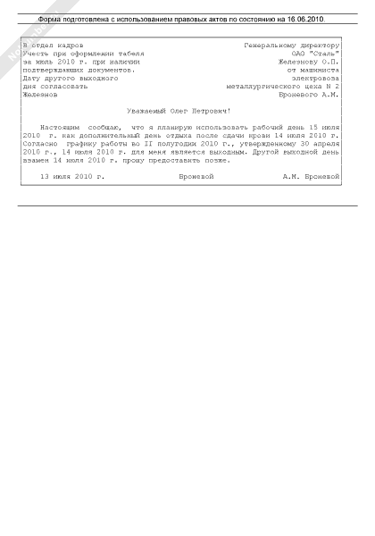 - 2410Заявление об использовании дополнительного дня отдыха непосредственно после сдачи крови