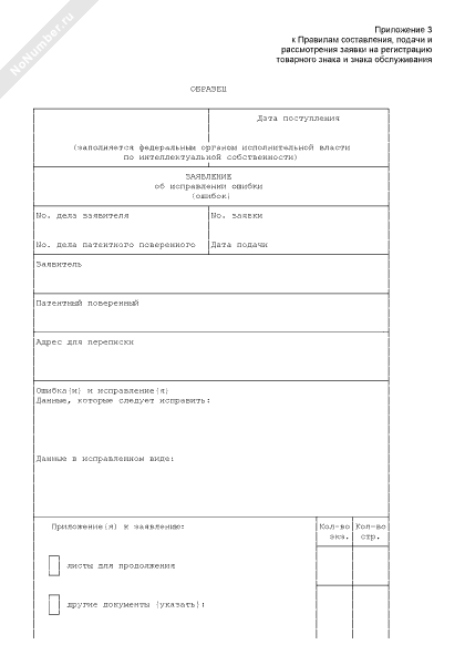- 2406Заявление об исправлении ошибки (ошибок) в заявке на регистрацию товарного знака и знака обслуживания
