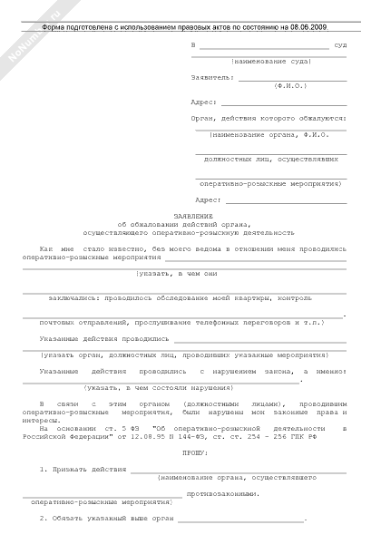 - 2416Заявление об обжаловании действий органа, осуществляющего оперативно-розыскную деятельность