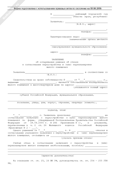 - 2466Заявление об оспаривании решения об отказе в согласовании переустройства и (или) перепланировки жилого помещения