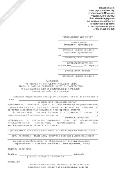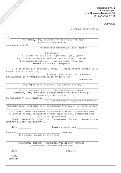 - 2508Заявление об отказе получения страховых сумм от выгодоприобретателя по государственному обязательному страхованию (родственников сотрудника органов по контролю за оборотом наркотических средств и психотропных веществ), право на которые заявитель имеет в соответствии с законодательными и нормативными правовыми актами Российской Федерации