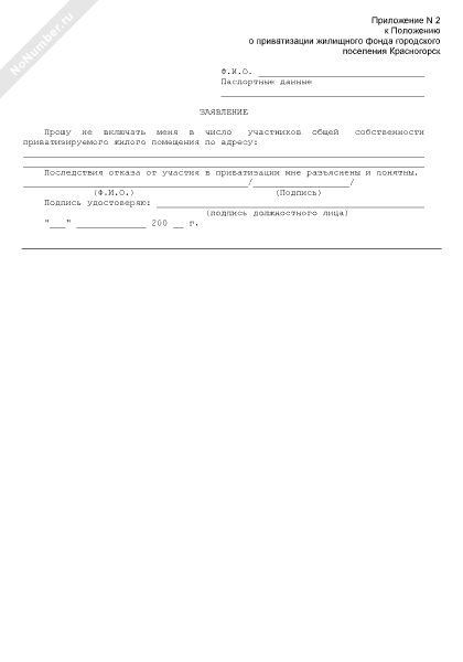 - 2520Заявление об отказе от приватизации жилья на территории городского поселения Красногорск Московской области