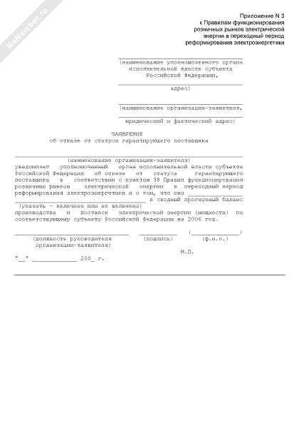 - 2514Заявление об отказе от статуса гарантирующего поставщика электрической энергии (мощности)