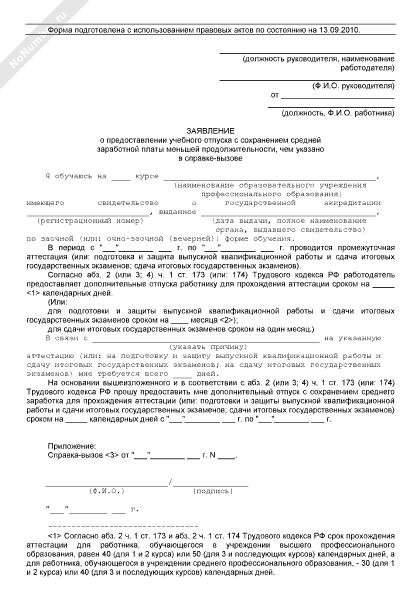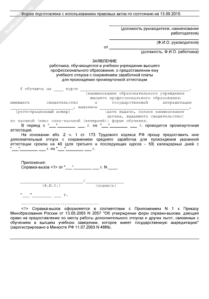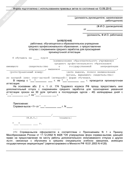 - 2829Заявление работника, обучающегося в образовательном учреждении среднего профессионального образования, о предоставлении отпуска с сохранением среднего заработка для прохождения промежуточной аттестации