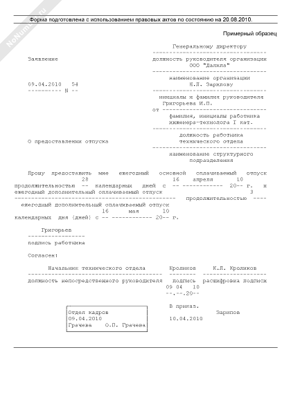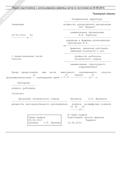- 2847Заявление работника о предоставлении ежегодного основного оплачиваемого отпуска