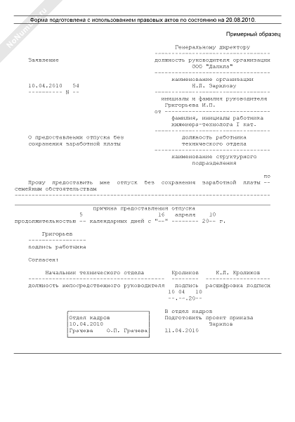 - 2848Заявление работника о предоставлении отпуска без сохранения заработной платы