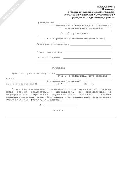 - 2857Заявление родителей о принятии ребенка в муниципальное дошкольное образовательное учреждение города Железнодорожного Московской области