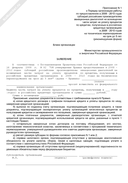 - 2863Заявление российских производителей авиационных двигателей на возмещение части затрат на уплату процентов по кредитам, полученным в российских кредитных организациях в 2008–2010 годах на техническое перевооружение на срок до 5 лет