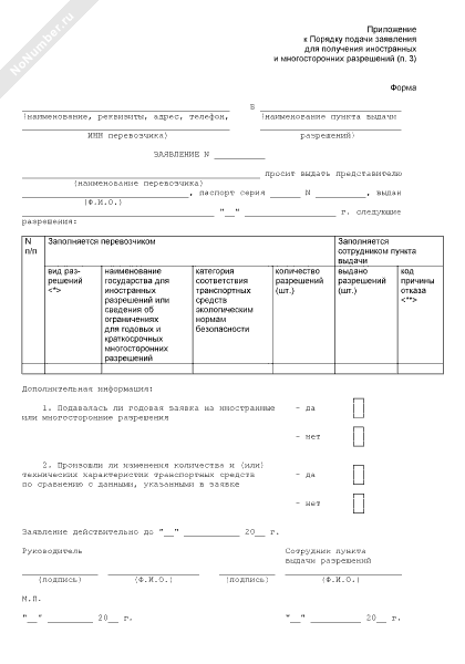 - 2864Заявление российского перевозчика на получение иностранных и многосторонних разрешений на осуществление перевозок грузов и пассажиров автомобильным транспортом