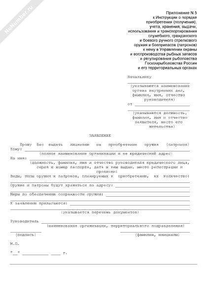 - 2866Заявление руководителя главрыбвода и его территориальных органов для получения лицензии на приобретение оружия и патронов