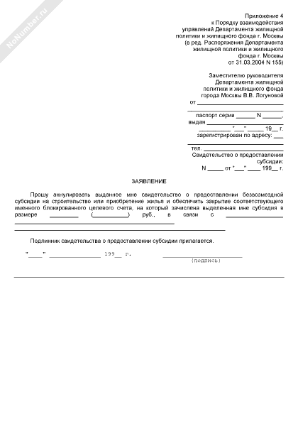 - 2868Заявление с просьбой об аннулировании выданного свидетельства о предоставлении безвозмездной субсидии на строительство или приобретение жилья