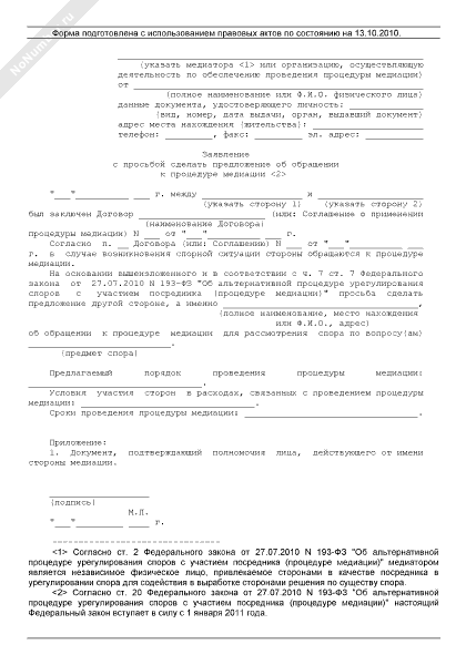 - 2869Заявление с просьбой сделать предложение об обращении к процедуре медиации