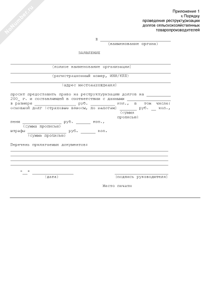 - 2874Заявление сельскохозяйственного товаропроизводителя о предоставлении права на реструктуризацию долгов