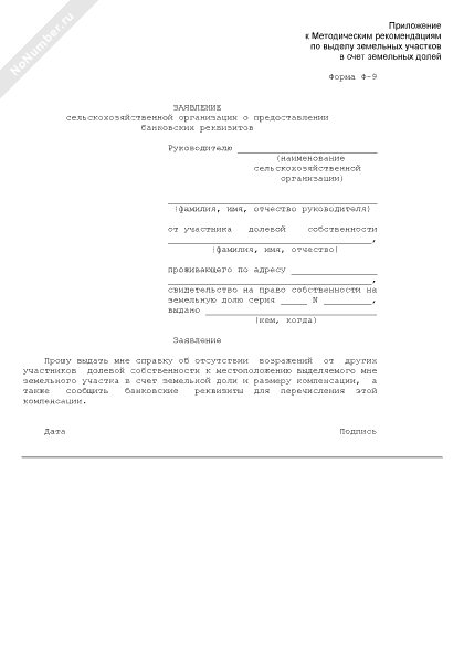 - 2875Заявление сельскохозяйственной организации о предоставлении банковских реквизитов (форма № 9)