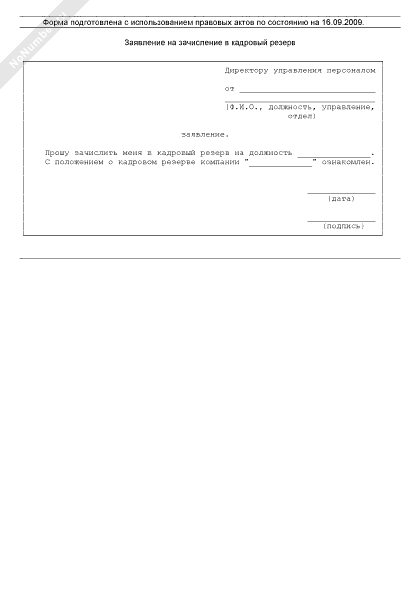 - 2888Заявление сотрудника на зачисление в кадровый резерв компании