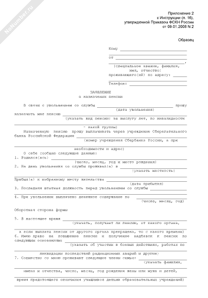 - 2886Заявление сотрудника, проходившего службу в органах по контролю за оборотом наркотических средств и психотропных веществ, о назначении пенсии в связи с увольнением со службы