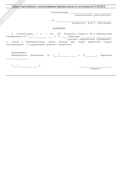 - 2889Заявление сотрудницы о снижении ей норм выработки в связи с беременностью