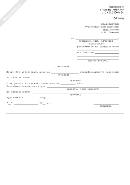 - 2894Заявление специалиста с высшим и средним профессиональным образованием на аттестацию для получения квалификационной категории в Аттестационной комиссии Федерального медико-биологического агентства