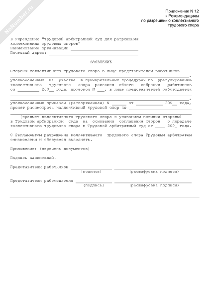 - 2897Заявление сторон коллективного трудового спора о рассмотрении коллективного трудового спора в Трудовом арбитражном суде