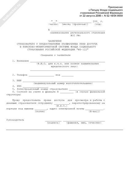 - 2899Заявление страхователя о предоставлении расширенных прав доступа в поисково-мониторинговой системе Фонда социального страхования Российской Федерации «ФЗ-122»