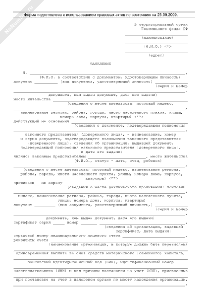 - 2978Заявление, подаваемое через законного представителя или доверенное лицо, о предоставлении единовременной выплаты за счет средств материнского (семейного) капитала