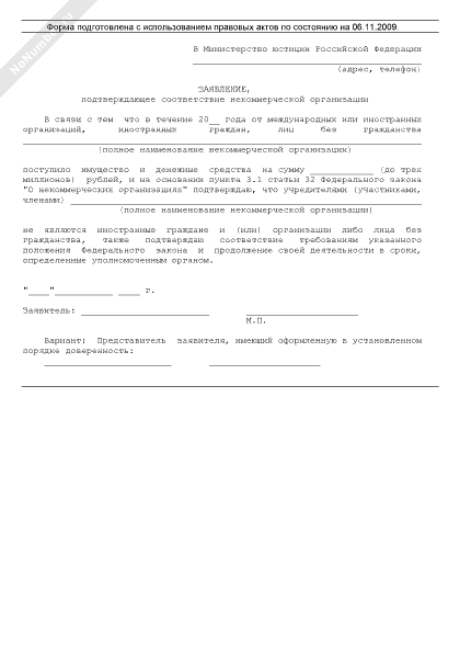 - 2979Заявление, подтверждающее соответствие некоммерческой организации требованиям законодательства