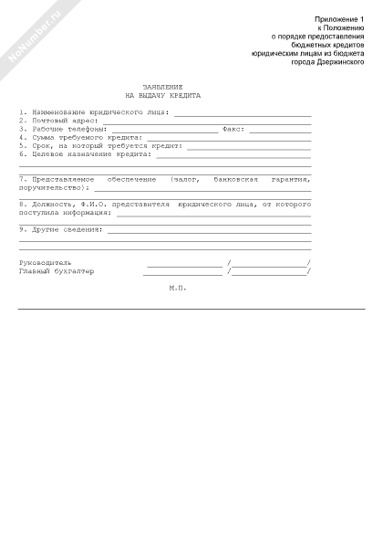 - 2972Заявление юридического лица на выдачу бюджетного кредита из бюджета города Дзержинского Московской области