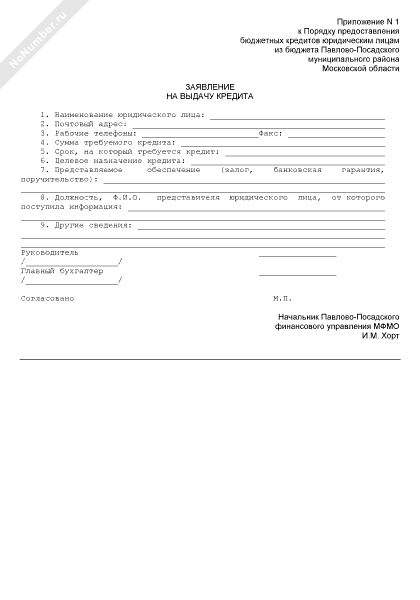 - 2973Заявление юридического лица на выдачу кредита из бюджета Павлово-Посадского муниципального района Московской области