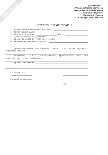 - 2970Заявление юридического лица на выдачу кредита из бюджета г. Долгопрудный Московской области