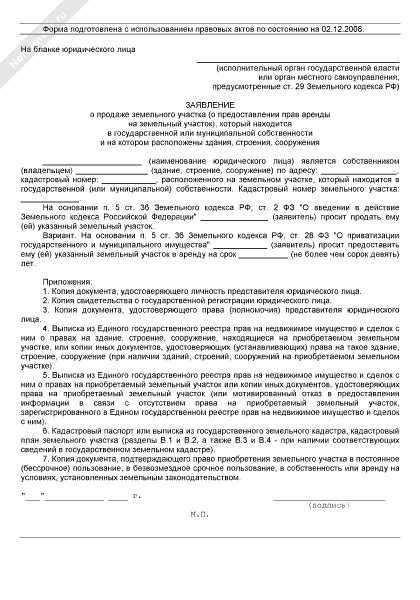 - 2975Заявление юридического лица о продаже земельного участка (о предоставлении прав аренды на земельный участок), который находится в государственной или муниципальной собственности и на котором расположены здания, строения, сооружения