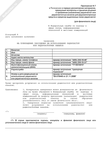 - 3061Заявление на прекращение разрешения на использование радиочастот или радиочастотных каналов (для физического лица)