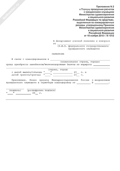 - 3062Заявление на приобретение денежных документов (билетов) для проезда к месту служебной командировки и обратно