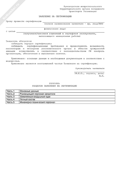 - 3064Заявление на сертификацию для получения сертификата (внесения изменений в сертификат) эксплуатанта, выполняющего авиационные работы