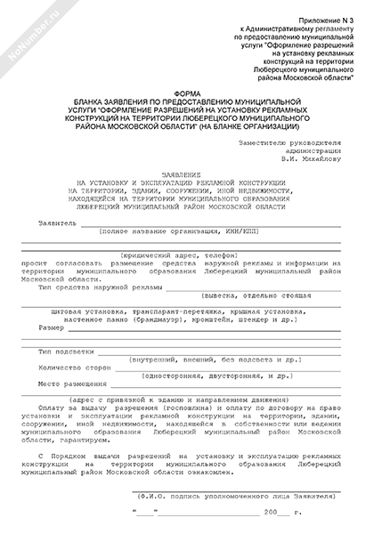 - 3066Заявление на установку рекламной конструкции на территории Луховицкого муниципального района Московской области