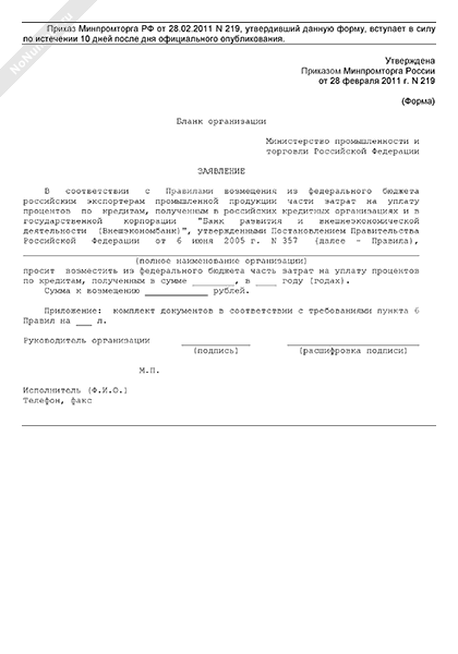 - 3080Заявление о возмещении из федерального бюджета части затрат на уплату процентов по кредитам, полученным в российских кредитных организациях и в государственной корпорации «Банк развития и внешнеэкономической деятельности (Внешэкономбанк)» российскими экспортерами промышленной продукции