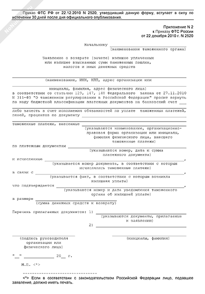 - 3078Заявление о возврате (зачете) излишне уплаченных или излишне взысканных сумм таможенных пошлин, налогов и иных денежных средств