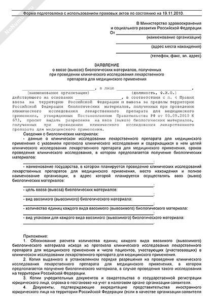 - 3069Заявление о ввозе (вывозе) биологических материалов, полученных при проведении клинического исследования лекарственного препарата для медицинского применения