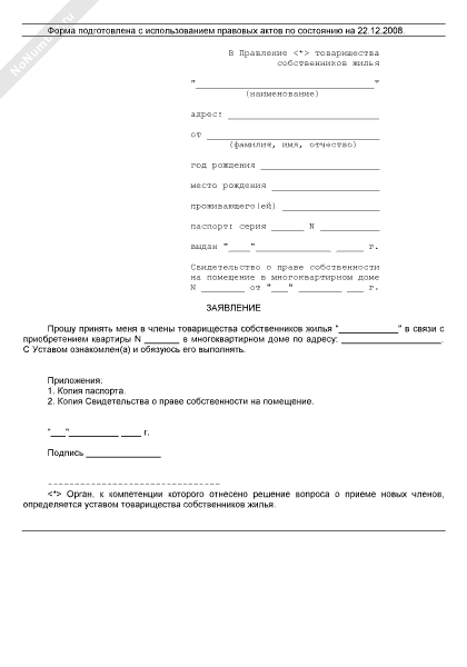 - 354Заявление гражданина — собственника помещения в многоквартирном доме о вступлении в члены товарищества собственников жилья